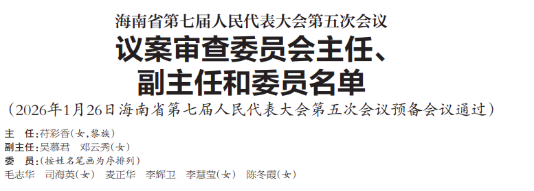 海南省第七届人民代表大会第五次会议将于1月27日至31日在海口举行。大会将于27日上午9时在省人大会堂隆重开幕。